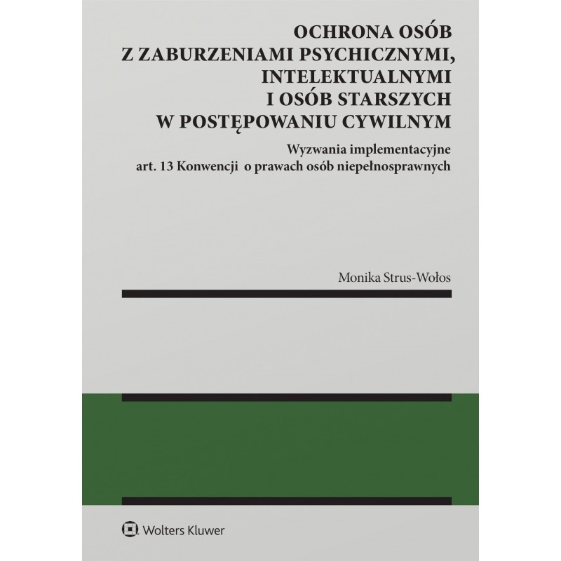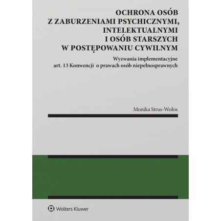 Książka stanowi nie tylko głos ekspercki, lecz także wyraz troski o godność, podmiotowość i realne uczestnictwo osób najsłabszych w postępowaniach cywilnych. Autorka z naukową precyzją i wyjątkową empatią bada, czy polskie postępowania cywilne – od ogólnych spraw cywilnych przez postępowania opiekuńcze do spraw osobowych – spełnia standardy dostępności wymiaru sprawiedliwości wynikające z art. 13 Konwencji o prawach osób niepełnosprawnych. Łączy dogłębną znajomość prawa z interdyscyplinarnym podejściem, sięgając do dorobku nauk medycznych, psychologii i socjologii. Książka zawiera wiele postulatów de lege ferenda. Wskazuje także na potrzebę reform w obszarach szkoleń i organizacji sądownictwa. Szczególną wartość książki stanowią praktyczne wskazówki dotyczące komunikacji z osobami z zaburzeniami poznawczymi i komunikacyjnymi oraz analiza barier, z jakimi osoby te mierzą się w kontakcie z sądem. Publikacja jest przeznaczona dla naukowców, sędziów, pełnomocników, legislatorów, przedstawicieli zawodów medycznych i społecznych – dla wszystkich, którzy chcą budować wymiar sprawiedliwości dostępny dla każdego. „Recenzowana monografia jest ujęciem bardzo obszernym i kompleksowym, mogącym pretendować do opracowania o charakterze systemowym. (…) Autorka będąca także znakomitym praktykiem omawia wszystkie instytucje nie tylko teoretycznie, ale zawsze z uwzględnieniem strony praktycznej. Przykładowo, niezwykle ważne dla czytelnika będą rozdziały poświęcone konkretnym instytucjom procesowym z punktu widzenia ich funkcjonowania wobec osób niepełnosprawnych lub starszych”. Z recenzji wydawniczej prof. Piotra Rylskiego