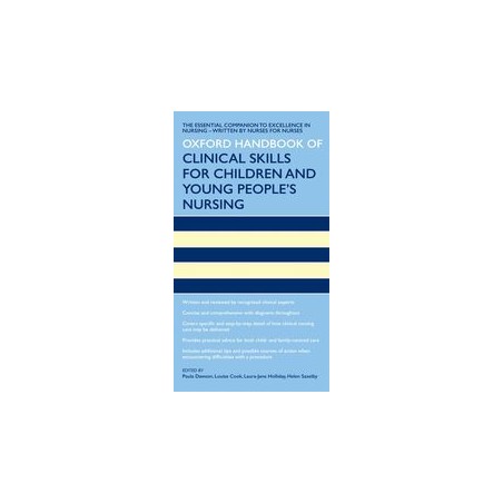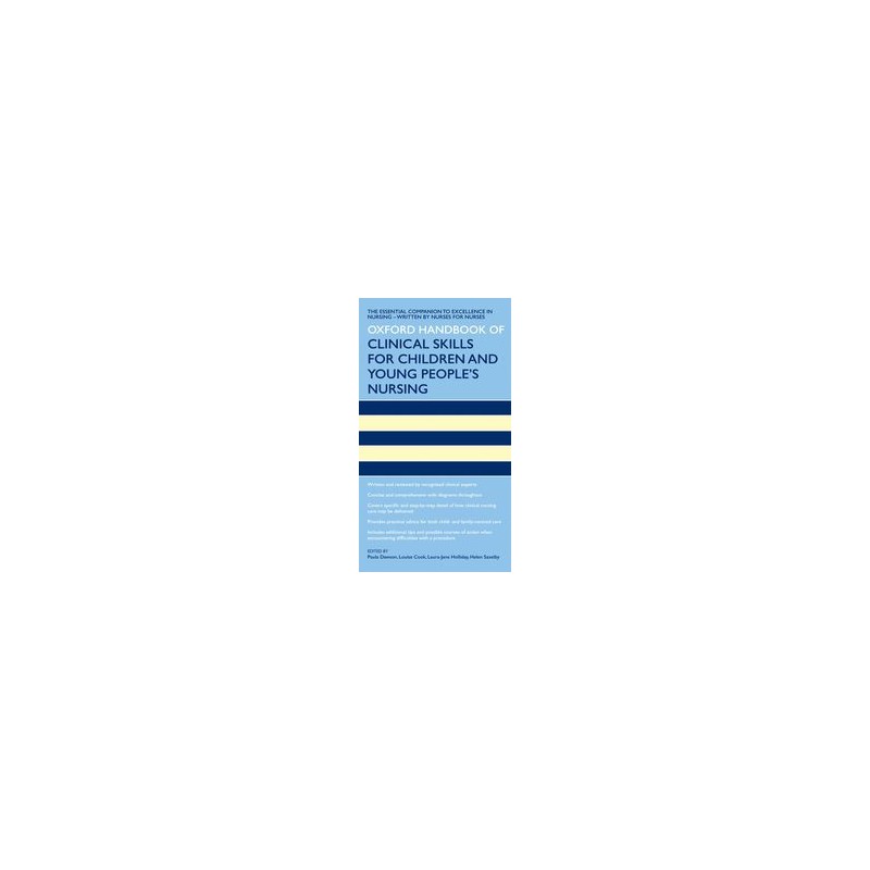 Childrens nurses are faced with unique challenges when undertaking clinical skills, adapting their knowledge and practice for the physical and developmental age of their patients. The Oxford Handbook of Clinical Skills for Childrens and Young Peoples Nursing is a practical guide to both the most basic and the increasingly complex elements of caring for the health needs of children and young people. Focusing on the key principles underpinning all elements of care, it provides asolid, evidence-based framework which practitioners can use to develop their clinical knowledge, skills, and attitudes. It systematically covers the body systems and the clinical skills relating to them, and includes additional tips and suggested courses of action when encountering difficulties with aprocedure, with practical advice from current practitioners. Written by experienced childrens nurses working either within clinical paediatric settings or as educators in the field, this handbook is an essential, quick, and reliable practice reference tool for any clinical setting.