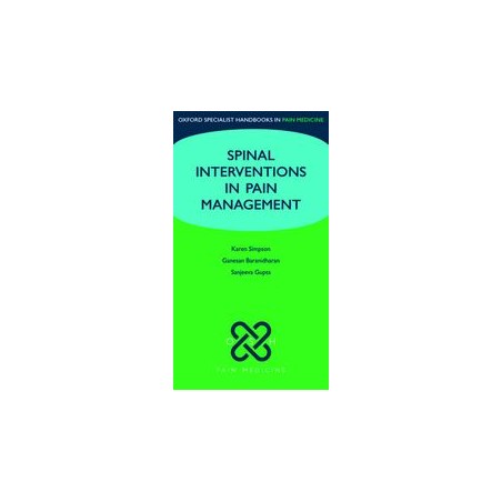 Applied anatomy and fluoroscopy for spinal interventions; Imaging in pain medicine; Drugs, equipment and basic principles of spinal interventions; Lumbar spine interventions; Cervical spine interventions; Thoracic spine interventions; Disc interventions; Vertebroplasty and kyphoplasty; Spinal cord stimulation in the treatment of chronic pain; Intrathecal drug delivery (ITDD); Autonomic blocks; Spinal interventions for cancer pain; Head and neck interventions; Medicolegal issues and interventional pain management;