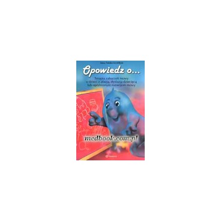 Wydawać się może, że nauka mowy jest czymś zupełnie naturalnym, jednak są dzieci, które z różnych przyczyn nie tylko nie mówią poprawnie, ale często nie mówią wcale. Osoby z afazją, dysfazją lub opóźnionym rozwojem mowy nie są łatwymi pacjentami, szczególnie dzieci. Nie ma jednej metody pracy z nimi, na rynku zaś niewiele jest pozycji poświęconych terapii zaburzeń mowy. Anna Tońska-Szyfelbein od wielu lat pracuje z dziećmi, także z dziećmi z afazją i dysfazją. Przez ten czas opracowała serię ćwiczeń, które pozwalają dziecku wypowiadać na początku pojedyncze wyrazy, potem zaś zwroty, by w końcu doprowadzić do opowiadania – dłuższej wypowiedzi, w której dziecko mówi poprawnie fonetycznie i gramatycznie. Bohaterami książki Opowiedz o... są dwie rodziny:: Duchnowskich i Duszków. Przedstawione są one na ilustracjach obrazujących różne, codzienne sytuacje, z którymi dziecko na pewno już się zetknęło. Różnorodne ćwiczenia mają na celu zachęcenie ucznia do nazywania, a następnie do budowania całych zdań i wreszcie dłuższych tekstów. Ćwiczenia proponowane przez Annę Tońską-Szyfelbein ćwiczą nie tylko umiejętności mowy. Dziecko zanim zacznie odpowiadać na polecenia terapeuty, powinno dokładnie obejrzeć obrazek, dzięki czemu poprawia się jego spostrzegawczość i umiejętność obserwacji. W trakcie odpowiedzi powinno też wykonać ćwiczenie manualne, np. kolorowanie, łączenie, wycinanie. Ćwiczona jest więc nie tylko zdolność mówienia, ale też obserwacji, umiejętności manualne oraz umiejętność szukania analogii między życiem dziecka a życiem fikcyjnych bohaterów.