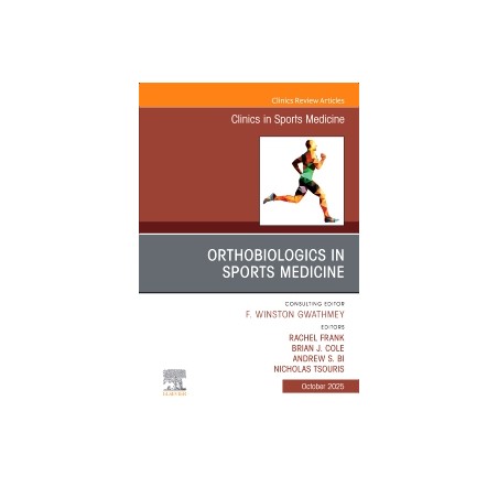 In this issue of Clinics in Sports Medicine, guest editors Drs. Rachel Frank, Brian J. Cole, Andrew S. Bi, and Nicholas Tsouris bring their considerable expertise to the topic of Orthobiologics in Sports Medicine. Top experts discuss areas such as traditional injection therapy for OA:: do they work and are they safe?; platelet-based injections for knee OA; BMA and BMC for the treatment of knee OA; adipose and MFAT for the treatment of knee OA; orthobiologics for ligament injuries; biologics for bone injuries; and more.