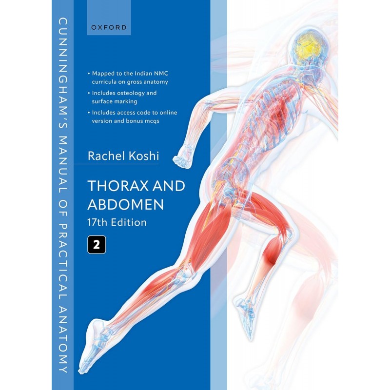 The 17th edition of this renowned anatomy text covers all the gross anatomy competencies required by the National Medical Council of India curricula. Volume 2 provides a clear, trustworthy, and complete guide to the thorax, abdomen, pelvis, perineum, and trunk. Five new chapters on, osteology and surface marking gives students easy-to-read and well-illustrated accounts of these topics for learning and exam preparation. Richly illustrated and packed with dissection boxes, clinical examples, and application boxes this text helps readers to easily learn anatomy in the dissection lab, classroom, and hospital. Purchasers of the 17th edition can access the online version of the book with 50 multiple choice questions and extra image-based revision content in an online appendix (see inside cover for details). A list of competencies at the beginning of the book shows where each key topic is covered for easy revision.Reader-friendly, and completely updated, Cunninghams brings expert anatomical teaching to the modern-day student of medicine, dentistry, and allied health sciences.