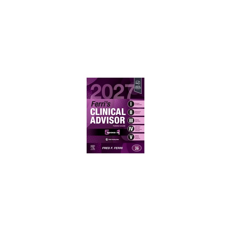 For nearly 30 years, Ferri’s Clinical Advisor has provided immediate answers on the myriad medical diseases and disorders you’re likely to encounter in clinical practice. A bestselling title year after year, this popular 5 books in 1 reference delivers vast amounts of information in a in a unique, easy-to-use format. It is updated annually to provide current and clinically relevant answers on over 1,000 common medical conditions across sections focusing on diseases and disorders, differential diagnoses, clinical algorithms, laboratory tests, and clinical practice guidelines?all carefully reviewed by experts in key clinical fields. Extensive algorithms, along with hundreds of high-quality photographs, illustrations, diagrams, and tables, ensure that you stay current with todays medical practice.