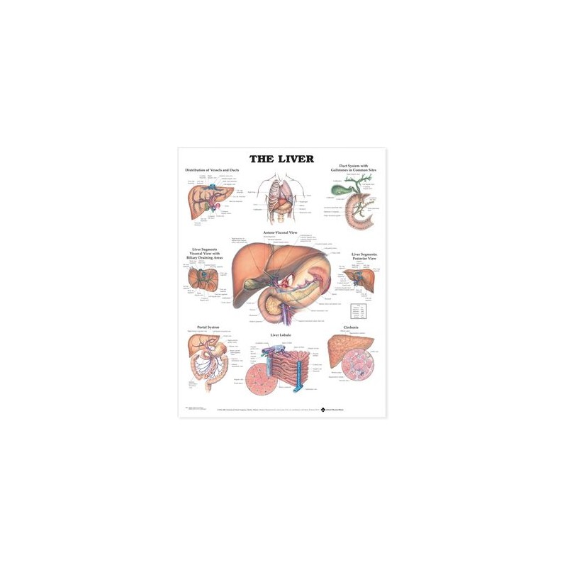 This chart on The Liver concentrates on general anatomy of the liver with clearly labeled and concise illustrations