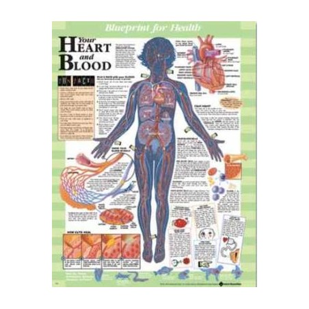Your Heart and Blood (from the Blueprint for Health charts series) is an excellent tool for pediatric patient education. Your Hear t and Blood describes the circulatory system and challenges the child to Run a Race with Your Blood--a fun way to illustrate how blood works its way through the body. Using colorful, anatomically correct illustrations, the chart demonstrates and describes the role of the heart, blood cells, and blood vessels, and shows how cuts heal. It includes fun facts (If all your red blood cells were laid end to end they would stretch more than 2 times around the earth.) and fun things to try in the classroom or at home to show how the circulatory system works.