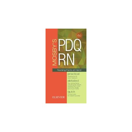 Find essential nursing information at a glance! Mosbys PDQ for RN:: Practical, Detailed, Quick, 4th Edition is an easy-to-use, pocket-sized guide to important facts, formulas, and procedures used in the clinical setting. It offers quick access to details you need but dont usually memorize, such as signs and symptoms, medications, conversions, abbreviations, and normal/abnormal ranges for lab tests. Durable pages and spiral binding can withstand the wear and tear of daily use on the job. When in doubt, check this handy reference!