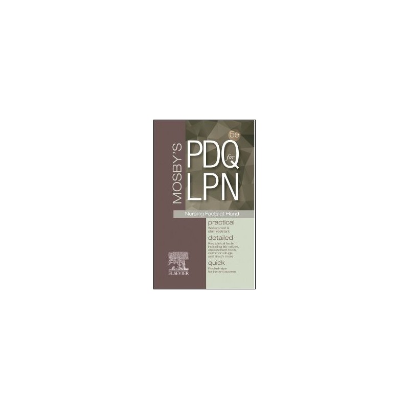 Get quick access to practical and detailed nursing information with this pocket-sized reference! Ideal for the clinical setting, Mosby’s PDQ for LPN, 5th Edition, puts hundreds of important facts, formulas, and procedures at your fingertips. Coverage includes details your need but don’t usually memorize, such as signs and symptoms, medications, conversions, abbreviations, and normal/abnormal ranges for lab tests. Durable, waterproof pages and spiral binding can withstand the wear and tear of daily use on the job. This is an essential clinical reference no LPN student should be without!