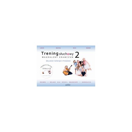 Czym jest Trening słuchowy Magdaleny Krawczun 2? Trening słuchowy Magdaleny Krawczun 2 to zestaw - książka i płyta CD, który obejmuje pomoc dydaktyczną oraz autorski program wspomagania rozwoju i odreagowania stresu u dzieci, młodzieży i osób dorosłych. Płyta jest zestawem melodii, dźwięków, odgłosów dźwiękonaśladowczych, piosenek oraz ich wersji instrumentalnych, które zachęcają do uważnego słuchania i aktywności. Książka to instruktaż, w którym autorka opisuje jak korzystać z proponowanych utworów oraz dzieli się zdjęciami, celami i gotowym scenariuszem zajęć. Materiały, które prezentuje są dobrane ze szczególną starannością. Były tworzone przez ponad dwa lata podczas zajęć muzyczno-ruchowych i po konsultacjach ze specjalistami z zakresu logopedii, psychologii, pedagogiki, muzyki i ruchu, aby były profesjonalne i wartościowe. Rekomendacje „Trening słuchowy Magdaleny Krawczun 2” stanowi wspaniałą bazę do organizowania wielu ciekawych zajęć dla najmłodszych. Bardzo chętnie sięgam po materiały Pani Magdy zarówno pracując z dziećmi w żłobku, jak i w czasie zabaw z moją 5-letnią córką, bo wiem, że w ten atrakcyjny sposób wspieram ich rozwój. Agnieszka Habrych – koordynatorka sieci żłobków „Trening Słuchowy Magdaleny Krawczun 2” uważam za bardzo wartościową pozycję do pracy z małymi dziećmi. Proponowane aktywności wpływają pozytywnie na wiele sfer, takich jak m.in:: nawiązanie kontaktu wzrokowego i emocjonalnego, stymulacja rozwoju mowy, koncentracja uwagi, nauka przez zabawę, naśladownictwo, pobudzanie zmysłów, rozwój emocjonalny, poznawczy i fizyczny. Poza tym gwarantuje dużo świetnej zabawy. Polecam jako mama i psycholog! Dr n. med. Olga Kurnatowska – psycholog kliniczny, właścicielka Centrum Rodzinkowo we Wrocławiu Autorka dysponuje bogatym doświadczeniem w zakresie wczesnego wspomagania rozwoju dziecka przez muzykę i ruch. W książce są opracowane scenariusze bogato ilustrowane fotografiami, mogące służyć pomocą rodzicom, logopedom, nauczycielom nauczania przedszkolnego i początkowego. (…) Zabawa dźwiękami to doskonały sposób do wzmocnienia narządów mowy i poprawienia dykcji. Chciałabym podkreślić, że publikacja Magdaleny Krawczun wychodzi naprzeciw oczekiwaniom zarówno rodziców, jak i nauczycieli. Dodatkową pomoc stanowi dołączona do książki płyta, która ułatwi i uatrakcyjni prowadzone zajęcia (fragment recenzji). Dr. n. hum. Anna Regner – neurologopeda Zajęcia budowane na elementach „treningu słuchowego” mogą stworzyć przyjazną atmosferę do wyrażania siebie przez ruch, głos, ciało. Jednocześnie mają utylitarne działanie na ciało i układ nerwowy, dbając o postawę, ruch naturalny, ćwiczenia przydatne w codziennym działaniu. Dzieci bawiąc się mogą zadbać o zdrowie przez odreagowanie napięcia, pokazywanie emocji przez ruch oraz świadomość ciała. (…) Polecam książkę i płytę nauczycielom, instruktorom zajęć ruchowych i pozalekcyjnych jako piękną bazę inspiracji (fragment recenzji). Dr n. o k.f. Katarzyna Wysocka – trener, dietetyk, instruktor zajęć dla dzieci, mama Trening słuchowy proponowany przez Magdalenę Krawczun to bardzo dobry początek przygody z muzyką!!! Zestaw nagrań muzycznych może bardzo dobrze wpłynąć na rozwój, nastrój i samopoczucie nie tylko młodego człowieka. Może również służyć jako pomoc dydaktyczna dla nauczycieli muzyki w przedszkolach, szkołach oraz instruktorów muzyki!!! Zdecydowanie polecam! Krzysztof Żesławski – muzyk, kompozytor, multiinstrumentalista