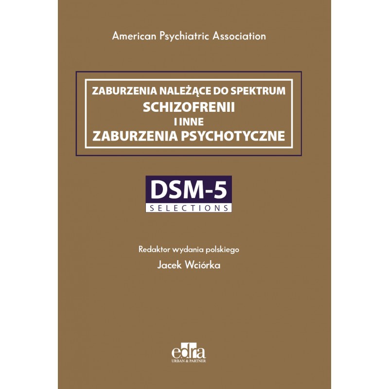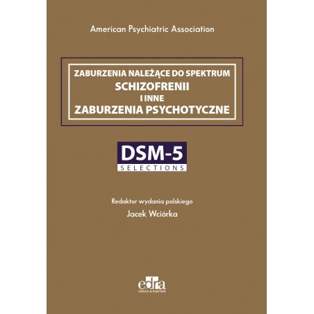 Zaburzenia należące do spektrum schizofrenii i inne zaburzenia psychotyczne jest jedną z pozycji serii „DSM-5 Selections”. Wspomniana seria to szereg publikacji książkowych, z których każda jest poświęcona któremuś z zaburzeń opisanych w DSM-5 Diagnostic and Statistical Manual of Mental Disorders. W niniejszej pozycji omówiono proces rozpoznawania zaburzeń należących do spektrum schizofrenii i innych zaburzeń psychotycznych. Książka jest bezcennym uzupełnieniem innych książek z serii „DSM-5 Selections”, a także stanowi istotny wkład w rozwój wiedzy z zakresu zdrowia psychicznego. Treść niniejszej publikacji opiera się na starannie wybranym materiale dotyczącym psychoz, który zaczerpnięto z:: - podręcznika DSM-5 Diagnostic and Statistical Manual of Mental Disorders, wyd. V (DSM-5 Diagnostyka i Statystyka Zaburzeń Psychicznych) - DSM-5 Guidebook (Przewodnik po DSM-5) - DSM-5 Clinical Cases (Przypadki kliniczne według DSM-5) - DSM-5 Self-Exam Questions (Pytania do samodzielnego sprawdzania wiadomości według DSM-5 ? przewodnik z pytaniami i odpowiedziami)