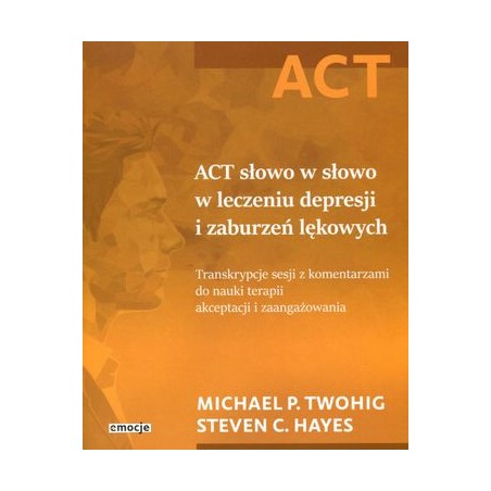 TA unikalna książka pokaże Ci, sesja po sesji, jak w najbardziej efektywny sposób prowadzić proces terapeutyczny w nurcie ACT (terapii akceptacji i zaangażowania) Ułożony i opatrzony komentarzami przez Stevena C. Hayesa, twórcę terapii akceptacji i zaangażowania (ACT), i Michaela P. Twohiga zbiór transkrypcji sesji terapeutycznych przeprowadzi Cię przez kolejne procesy terapii opartej na ACT. Transkrypcje zawarte w tej publikacji przedstawiają typowe sytuacje, które pojawiają się w praktyce klinicznej, a dodany do nich komentarz wyjaśnia, jak zidentyfikować sześć docelowych procesów ACT i pomóc klientom je przepracować. Ponieważ ACT jest terapią zorientowaną w większym stopniu na proces niż na technikę, proponowany przez autorów typ analizy „na żywym materiale jest wyjątkowo skuteczną metodą nauczenia się stosowania tego modelu terapeutycznego w praktyce. Książka pomoże Ci:: — zidentyfikować wskaźniki sugerujące, że podczas terapii powinieneś skupić się na określonym procesie; — tworzyć przydatne ćwiczenia wspierające klienta w rozwijaniu podstawowych procesów ACT; — oceniać postępy klienta i ustrukturyzowywać sesje w taki sposób, aby osiągnąć maksymalny możliwy postęp; — nauczyć się różnych stylów stosowanych przez innych terapeutów, aby wdrażać ACT na swój własny sposób.